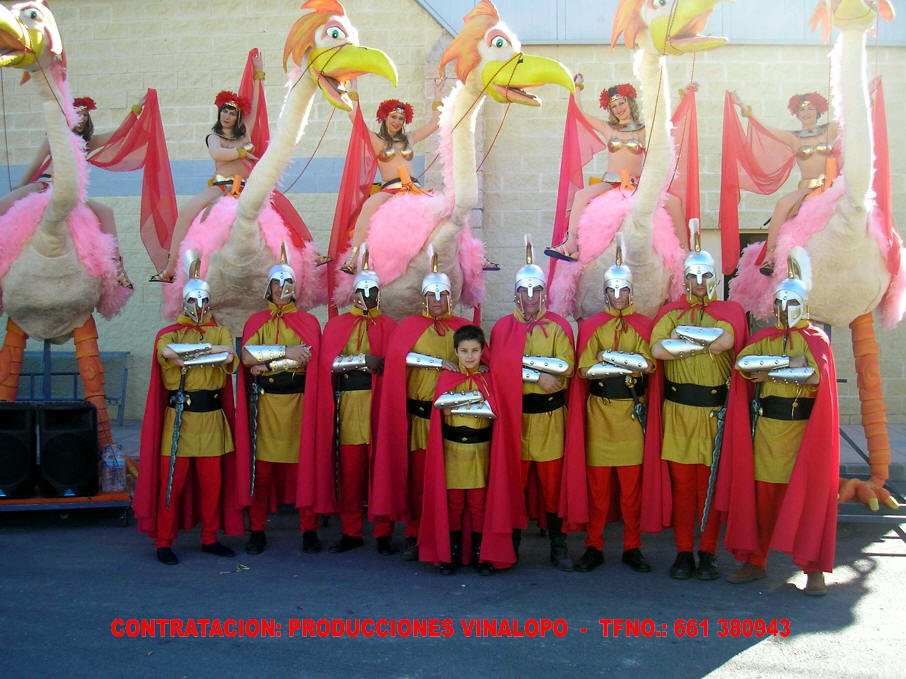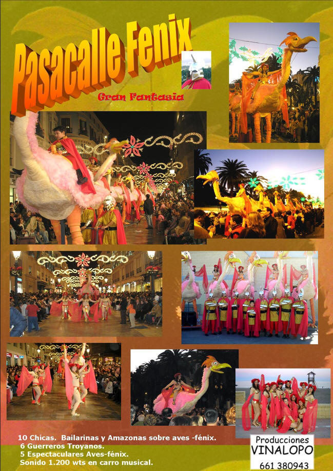 gigantescas y mitológicas Aves Fénix. En la cabecera un grupo