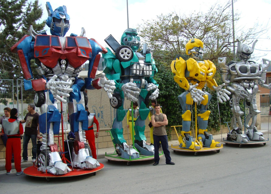 Espectacular en la calle, con los robots protagonistas de la película TRANSFORMERS.